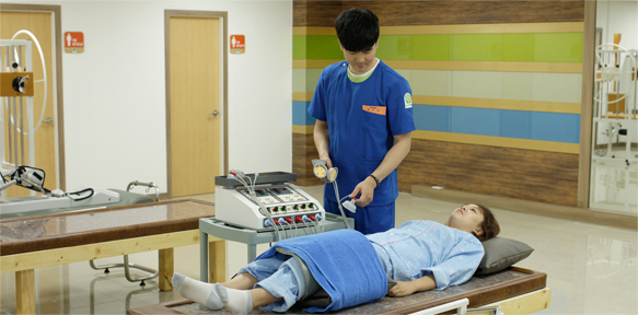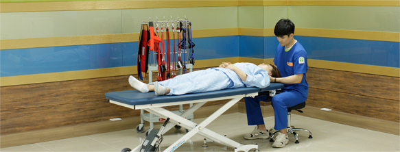 여러 가지 원인에 대해 발생한 신체적 손상 및 장애를 환자 개인에 맞는 증상과 능력에 맞게 열, 광선 , 전기 물 등의 물리적인 요소를 이용한 치료로써 온ㆍ냉습포, 적외선, 초음파 등의 광선열 치료, 특수물리치료, 전기자극치료, 초음파치료, 척추견인치료, 정형도수치료 및 재활을 위한 교육을 시행하고 있습니다.