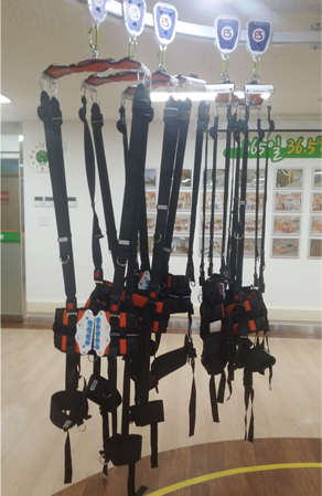 천장에 직선이나 곡선 레일 형태로 설치된 현수 장치입니다. 과학적 근거에 의한 보행훈련방식으로